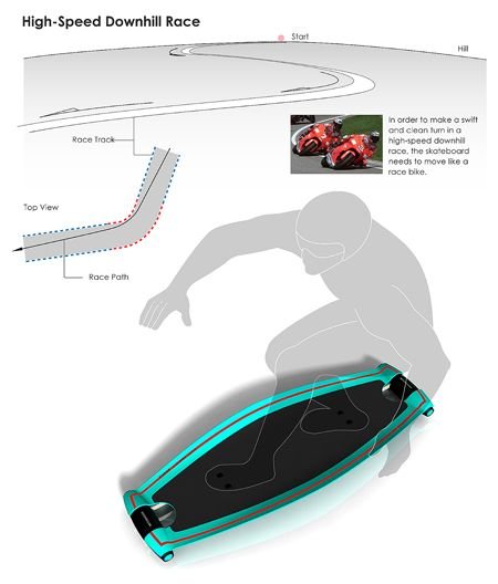 Концептуальный скейтборд под названием CURVE Extreme Sport делает возможным проведение скоростных соревнований. Колеса имеют специальную форму и покрытие, позволяющие совершать "острые" повороты. Заезды на CURVE будет требовать от участников максимум скорости, ловкости и упорства.